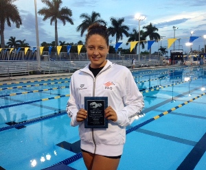 Congratulations to Alina Schulhofer for winning a High Point Award at the recent FGC Senior Championships (LCM), held at the Coral Springs Aquatic Complex from July 26-28, 2013! Alina finaled in all her events as well well as took top 3 finishes in the 200IM, 200 Free, and more. She attributes her success to PAQ's intense focus on technical details and stroke mechanics to help her improve her times.